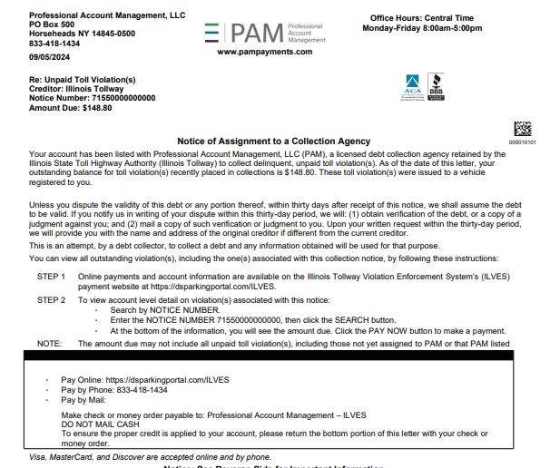 A licensed debt collection agency has been retained by the Illinois Tollway to collect delinquent, unpaid toll violations.